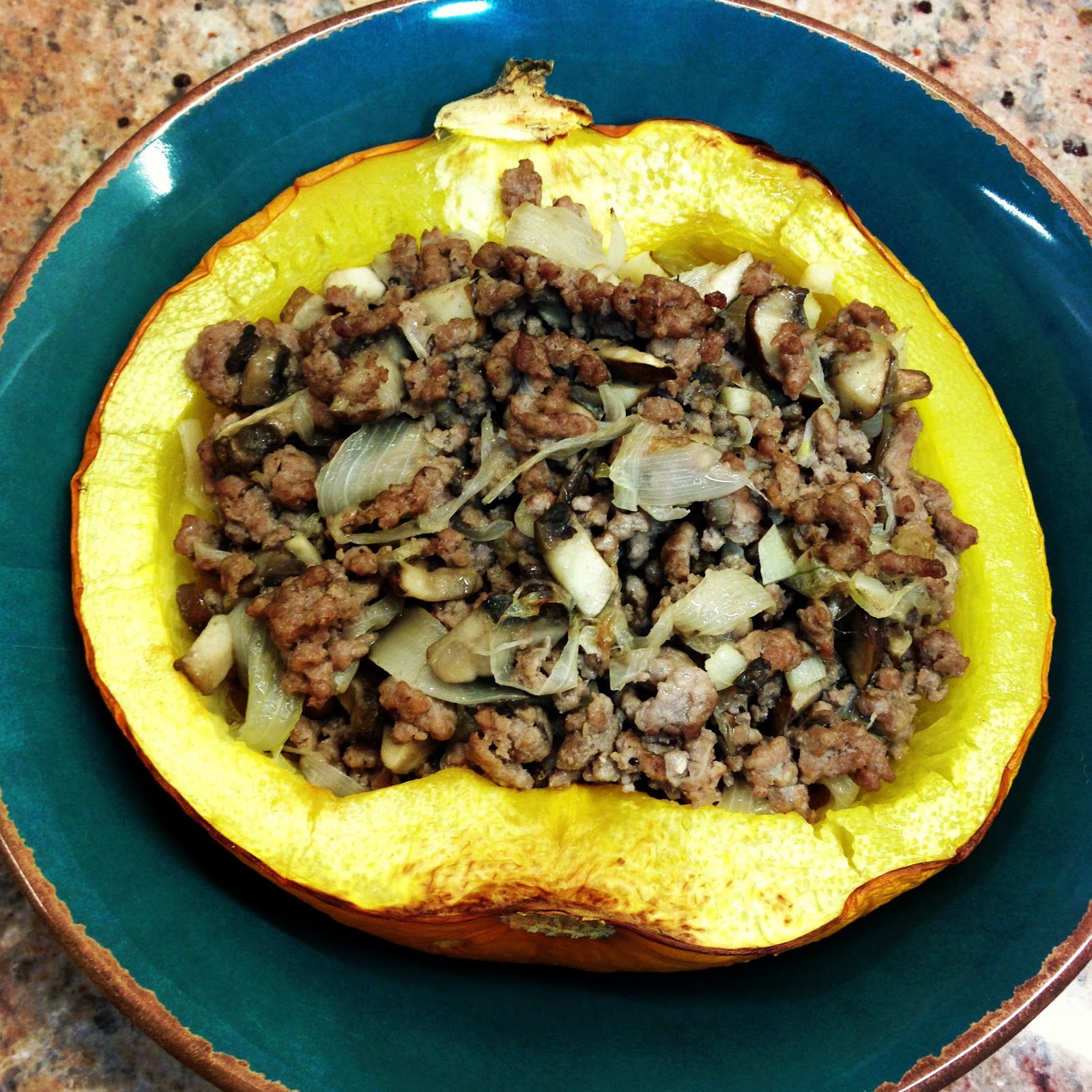 Lamb, Mushroom, & Onion Stuffed Pumpkin: Serves 4, Prep time: 10 min, Cook time: 50-55 min